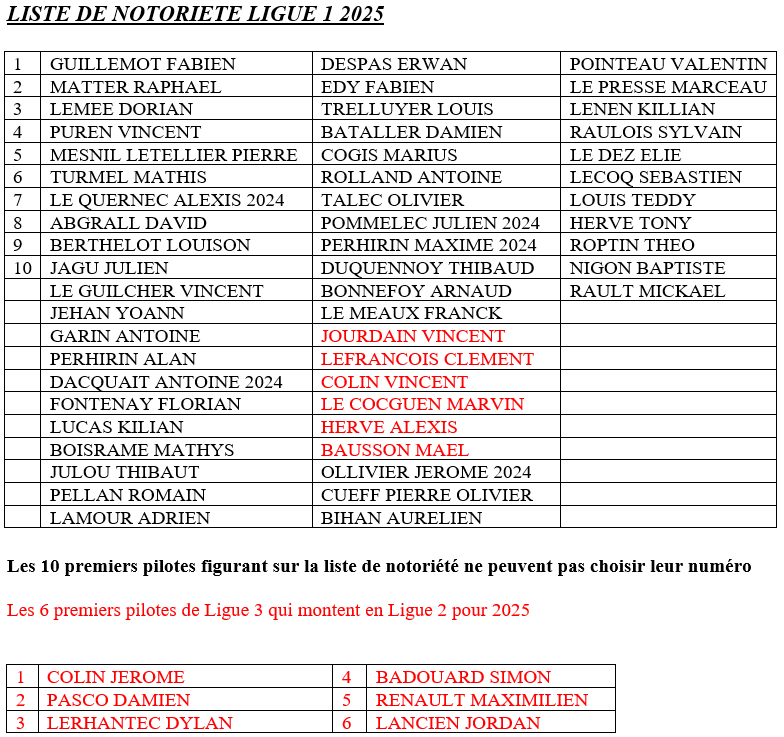 ATTENTION LES DOSSARDS POUR LES LICENCES JOURNÉES ET/OU PILOTES HORS LIGUE SERONT SUPPRIMÉS APRÈS CHAQUE ÉPREUVES